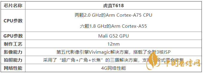 虎賁T618采用1 2nm制作I藝,為用戶帶來(lái)4G的網(wǎng)絡(luò)性能,為用戶提供入「]處理器性能CPU參數(shù)