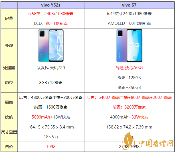vivoy52s和vivos7手機(jī)哪個(gè)更好?vivoy52s和vivos7對比,有哪些區(qū)別和配置差距,哪款手機(jī)更值得入手?接下來香煙網(wǎng)小編就為大家?guī)砹藇ivoy52s和s7全面參數(shù)配置對比,一起看看哪款更值得入手性價(jià)比更高吧!