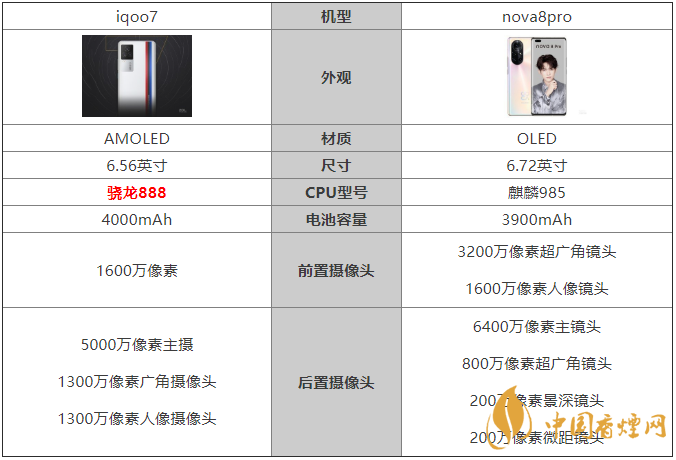 iqoo7和nova8pro對(duì)比詳情