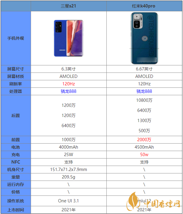 近期,即將迎來三星s21新機(jī)的發(fā)布,三星s21和紅米k40Pro有哪些區(qū)別?哪款手機(jī)更好?許多朋友對(duì)這兩款手機(jī)都十分關(guān)注,下面香煙網(wǎng)小編給大家?guī)砣莝21和紅米k40Pro的詳細(xì)參數(shù)對(duì)比,感興趣的朋友一起來看看吧!