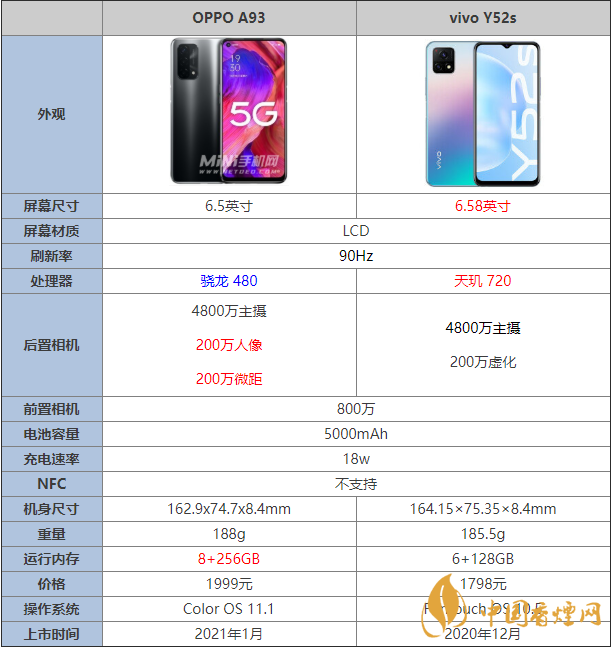 OPPOA93和vivoY52s參數(shù)對比 哪款手機更好