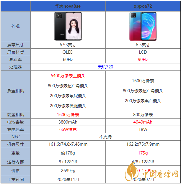 華為nova8se和oppoa72兩款手機(jī)都是采用了相同的處理器,那么在這兩款手機(jī)中到底是哪一款有著更加好的性能呢?哪款手機(jī)更值得入手?接下來香煙網(wǎng)小編將對華為nova8se和oppoa72參數(shù)對比進(jìn)行介紹,一起來看看吧!