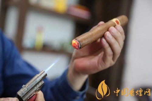 單手45°持茄,火焰正對(duì)雪茄端面,盡量靠近但不觸碰,轉(zhuǎn)動(dòng)雪茄,到端部變黑即可停止,過(guò)分點(diǎn)燃會(huì)導(dǎo)致雪茄苦澀。