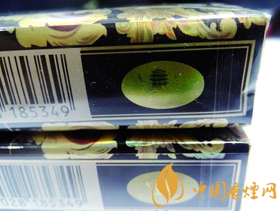 真品小盒正反面均采用具有黃色、紅色、紫色、藍(lán)色和綠色等干涉色的效果珠光油墨,在不同光線(xiàn)角度下會(huì)呈現(xiàn)出不同顏色,同時(shí)也具有能阻止掃描儀、電分機(jī)及彩色復(fù)印機(jī)的復(fù)制功能;假煙在不同光線(xiàn)角度無(wú)法呈現(xiàn)出彩色光線(xiàn)變化,因多采用高清掃描復(fù)制,其圖片多邊緣呈現(xiàn)顆粒粗大的網(wǎng)格狀,與真品材質(zhì)存在顯著差異。