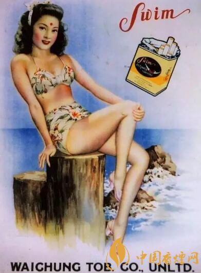 游泳牌香煙廣告在民國(guó)時(shí)期也算是前衛(wèi)大膽,廣告是一位著泳裝的美女在海邊,濃裝艷抹,頭發(fā)卷曲,時(shí)髦靚麗。