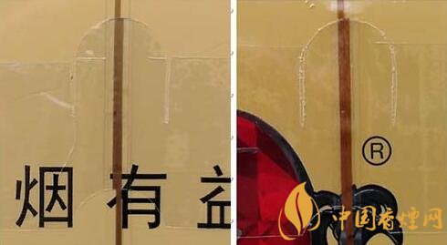 2.注冊商標(biāo)圖案。真品卷煙采用起凸工藝商標(biāo)印刷,圖案細(xì)節(jié)起凸完美,眼觀、手摸凹凸感明顯。該款假冒卷煙商標(biāo)印刷起凸工藝較差,部分細(xì)節(jié)未做起凸,手摸圖案平滑。(圖2左真右假)