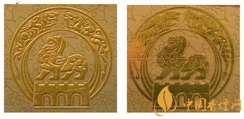 假冒卷煙:該款假冒卷煙南京市徽?qǐng)D案,無(wú)凹凸感,色彩暗淡,圖案模糊。(左真右假)