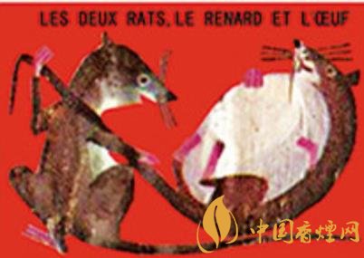 法國著名煙草經(jīng)銷機構(gòu)塞塔公司推出過系列伊索和拉封丹寓言卡通火花,其中的“鼠火花”內(nèi)容詼諧,十分有趣?!峨p鼠、狐貍和雞蛋》(圖二)讓外界不要低估老鼠的智慧。狡猾的狐貍原本認定老鼠搬不了雞蛋,不料兩個耗子狡黠協(xié)作,一個躺倒抱住雞蛋的同時直接讓伙伴拽拉著它的尾巴,彼此安然回洞!《老鼠和牡蠣》(圖三)是說被誘惑和貪婪的后果很嚴重:內(nèi)陸之鼠初到海邊,看到張殼做日光浴的牡蠣新奇不已,竟一頭伸進殼中欲以秀色為餐,結(jié)果……即刻就要閉合的美艷景色不會免費??!