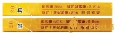 真煙鋼印為機(jī)器動(dòng)態(tài)打印,整體鋼印較深且筆畫較細(xì),每個(gè)鋼印間距不等,高低不平;假煙鋼印一般為手工靜態(tài)打印,整體鋼印較淺、較模糊。