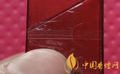 第三步:看紅旗渠(黃金葉)牌香煙的最外面的透明包裝紙。在開封處的可以清楚的看到刀鋒留下的痕跡,開封時應該是輕松的將透明包裝撕開,撕開后的包裝的包裝條應該是很整齊的邊。