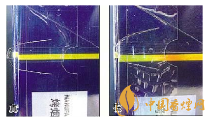 二看透明紙燙封:真品卷煙燙封平整,起皺均勻;假冒卷煙起皺不規(guī)則,皺紋多呈氣泡狀或網(wǎng)格狀。