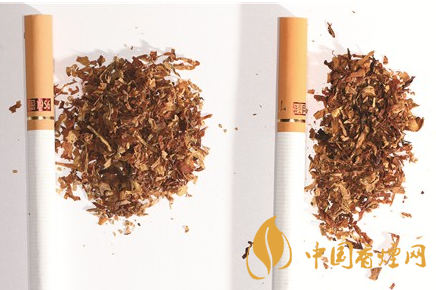 煙絲差異對比:真煙煙絲切絲寬度與長度適中均勻,顔色呈橘黃色,光澤油潤性好,柔軟疏松,煙絲中含碎末少,煙絲結(jié)構(gòu)為葉絲、膨脹梗絲和造紙法再造煙葉;假煙制絲工藝粗糙,一般使用未經(jīng)處理的劣質(zhì)煙絲,色澤發(fā)暗無光澤,呈暗褐色,煙絲中含碎末較多,煙絲結(jié)構(gòu)一般為葉絲和沒有經(jīng)過膨脹處理的梗絲,無造紙法再造煙葉,煙絲結(jié)構(gòu)與真品特征存在明顯差異。