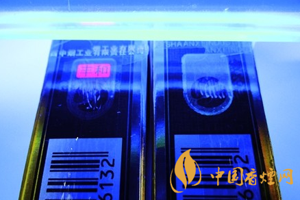 商標(biāo)紙印刷工藝差異對比:真品小盒商標(biāo)紙選用光柱鐳射卡紙,采用凹凸?fàn)C金一次成型技術(shù),小盒正面商標(biāo)圖案和字跡清晰且凹凸感明顯,燙金部分光滑無格紋狀;假煙小盒仿制粗糙,燙金套印不準(zhǔn),商標(biāo)圖案部分仿印有明顯的格紋狀,與真品印刷工藝存在明顯差異。