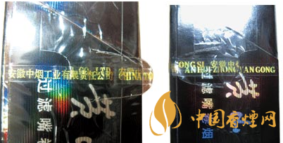 假煙側(cè)面防偽鐳射徽章燙印不干凈,左右擺動煙包防偽徽章呈現(xiàn)鐘表指針上下擺動。